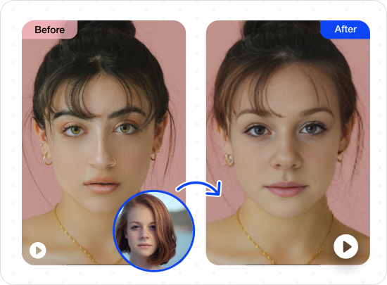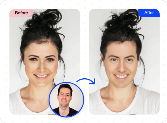 MioCreate AI Face Swap performs seamless face swap. It can accurately identify the new face you want to use and blend it into the main photo with AI, to generate a harmonious face swap that looks like a perfect fit on top of the original.